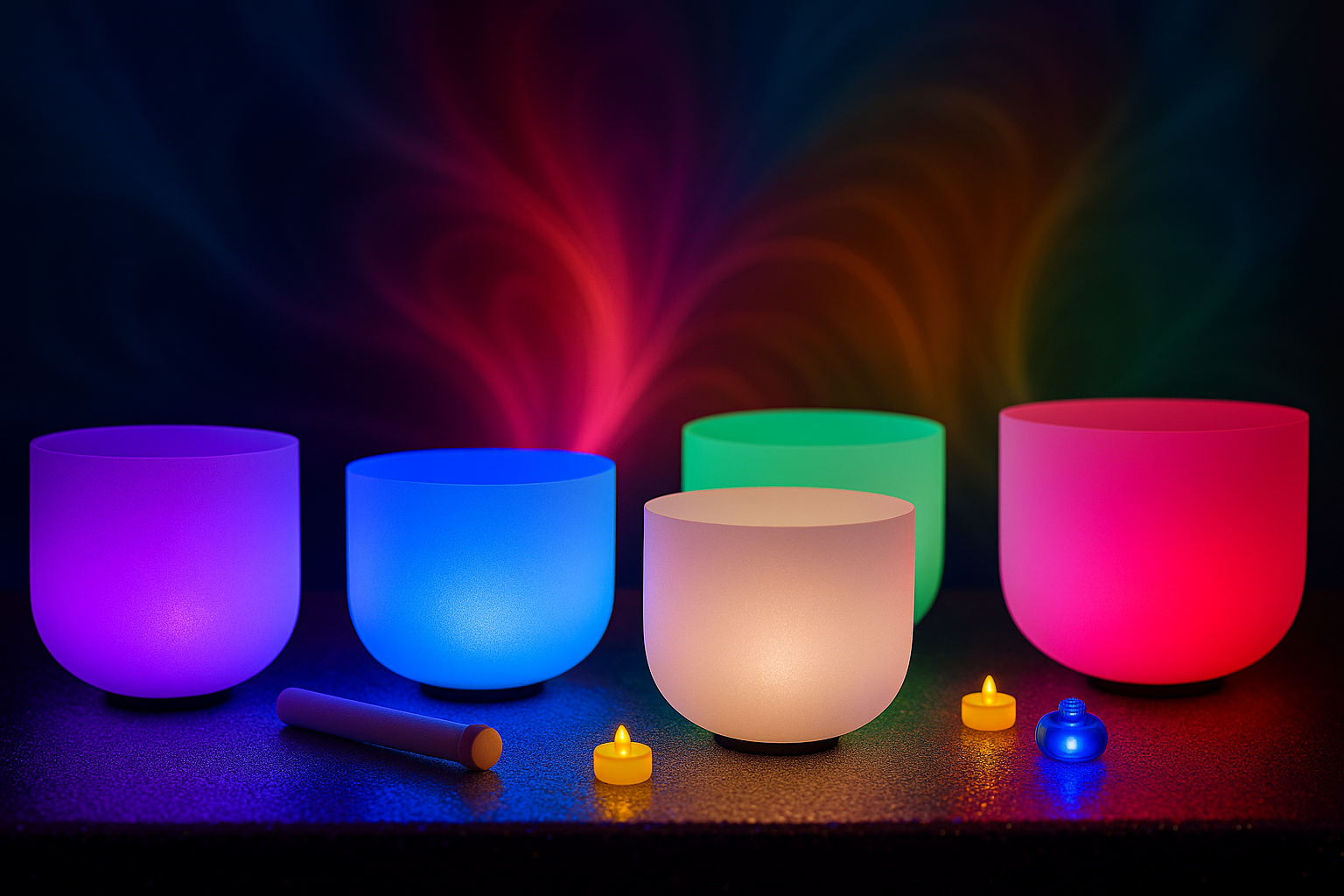 A full-body vibrational sound bath with antique crystal bowls, tuning forks, and sensory instruments